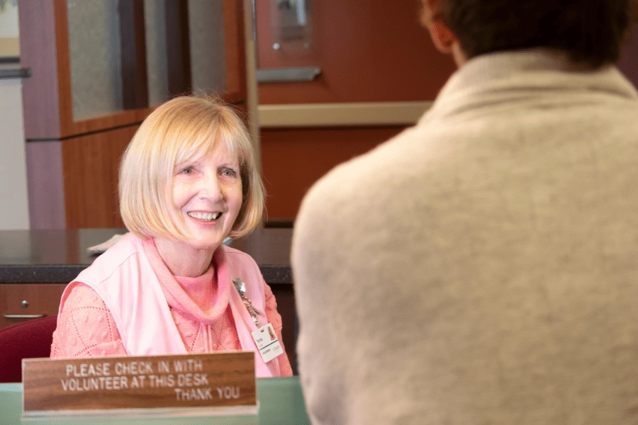Shift: Monday-Friday from 8 a.m. – noon and noon – 4 p.m. - Information desk: Volunteers at this desk are the first person our visitors see when they enter the medical center, Entrance C. The desk is located between the imaging center and surgery center. Volunteers direct and assist visitors to patient rooms.